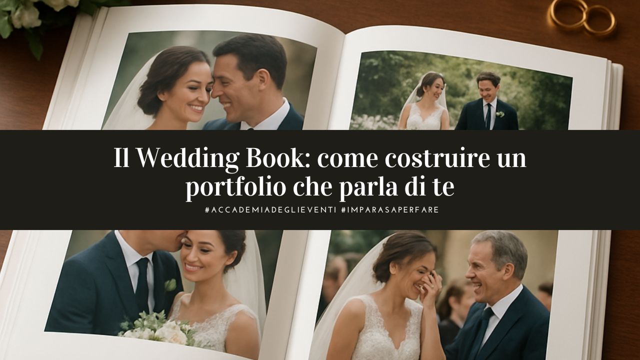 Ed è proprio su questi aspetti che si concentra la lezione dedicata al Wedding Book all’interno del corso avanzato per Wedding Planner di Accademia degli Eventi: non una semplice guida teorica, ma un percorso pratico per trasformare il portfolio in uno strumento di lavoro concreto, capace di comunicare valore e generare nuove opportunità.